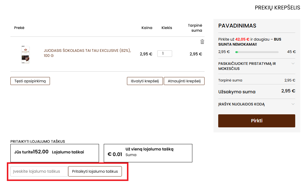 1️⃣ Krepšelyje matysite savo turimų taškų kiekį.